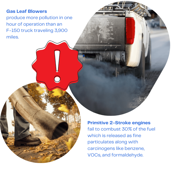 Gas leaf blowers produce more pollution in one hour of operation than an F-150 truck traveling 3,900 miles.